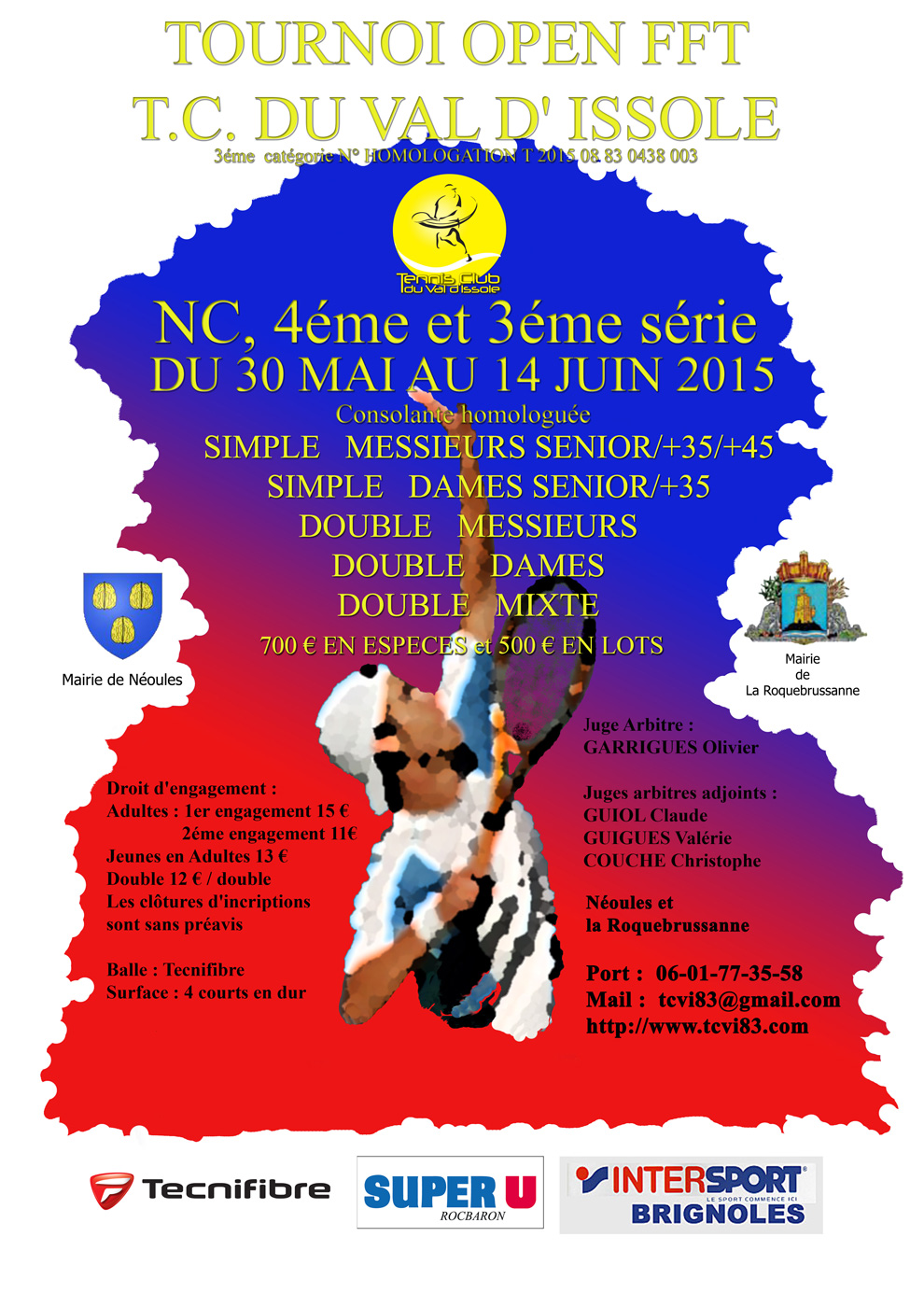 Le tournoi adulte du TCVI débute samedi 30 mai, vous pouvez vous inscrire dès maintenant par téléphone (06.01.77.35.58) ou par mail (tcvi83@gmail.com).